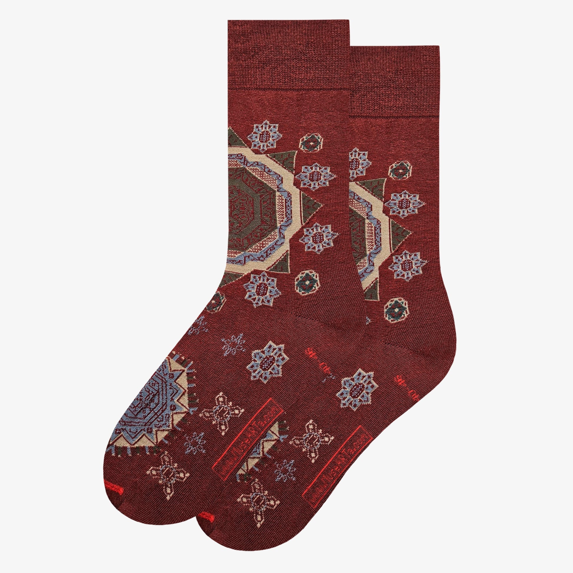 Entdecken Sie kunstvolle Socken, die ein meisterliches Design des Mamluk-Teppichs mit drei charakteristischen Medaillons präsentieren. Diese eleganten Socken verbinden kulturelle Handwerkskunst mit modernem Komfort und bringen orientalische Ästhetik in Ihren Alltag. Das ikonische Muster, inspiriert von historischen Textiltraditionen, macht sie zum perfekten Accessoire für Kunstliebhaber und Sammler. Hochwertig verarbeitet und angenehm zu tragen – ein subtiles Statement für Ihre persönliche Stilkultur.