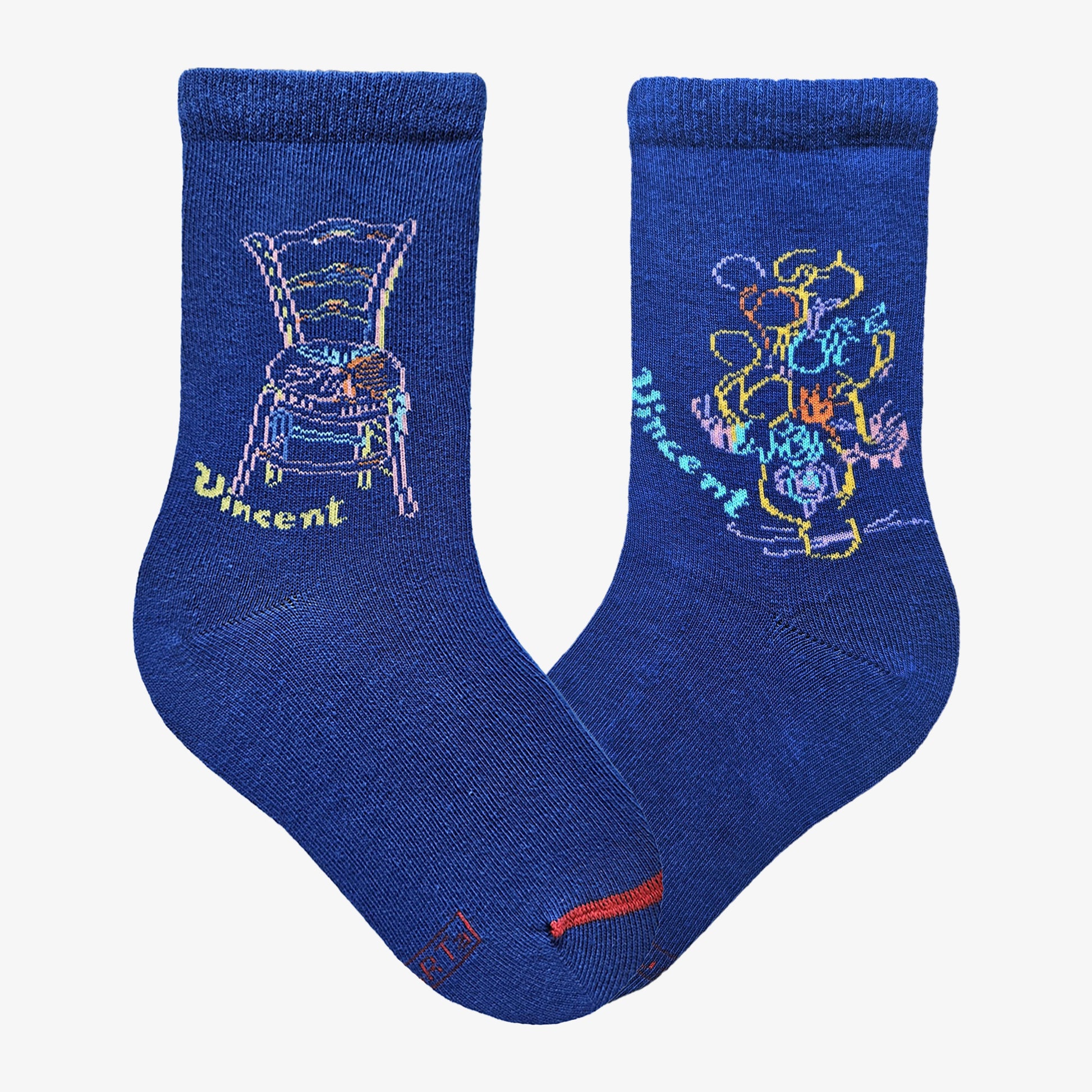 Descubra nuestros calcetines exclusivos para niños que muestran la obra maestra icónica de Vincent van Gogh. El diseño combina los brillantes girasoles con la característica silla, dos de los motivos más famosos del artista holandés. Estos calcetines de alta calidad llevan la historia del arte a la vida cotidiana de su hijo y combinan comodidad con estilo cultural. Perfecto para pequeños amantes del arte y un maravilloso regalo para familias que valoran la calidad y la inspiración artística.