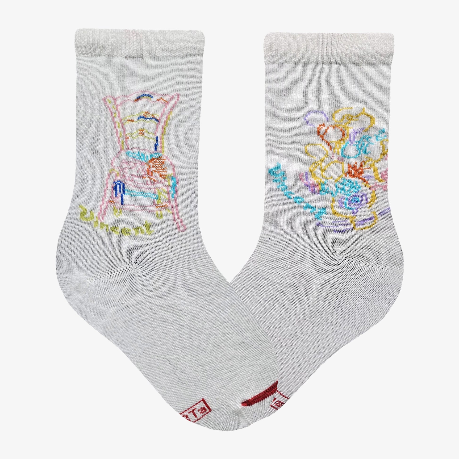 Descubra nuestros calcetines exclusivos para niños que muestran la obra maestra icónica de Vincent van Gogh. El diseño combina los brillantes girasoles con la característica silla, dos de los motivos más famosos del artista holandés. Estos calcetines de alta calidad llevan la historia del arte a la vida cotidiana de su hijo y combinan comodidad con estilo cultural. Perfecto para pequeños amantes del arte y un maravilloso regalo para familias que valoran la calidad y la inspiración artística.