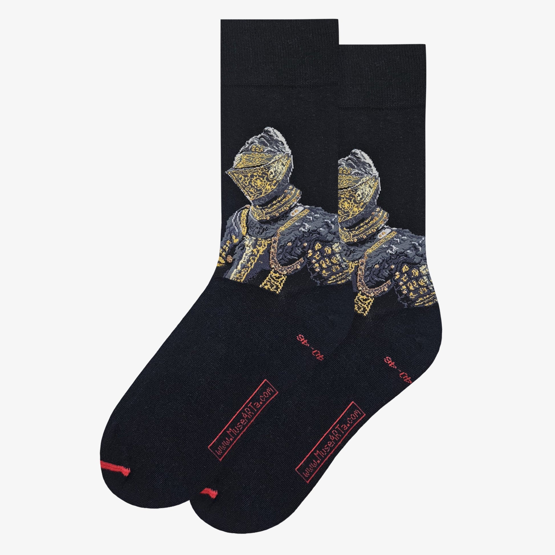 Queste calze d'arte con il motivo "Armatura Lion" di artisti sconosciuti combinano una raffinatezza artistica con straordinario comfort di indossare. Il design dettagliato offre a ciascun vestito una nota nobile e riflette la forza ed eleganza. Ideale per gli amanti di accessori unici che apprezzano lo stile e l'individualità.